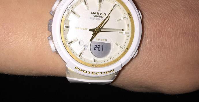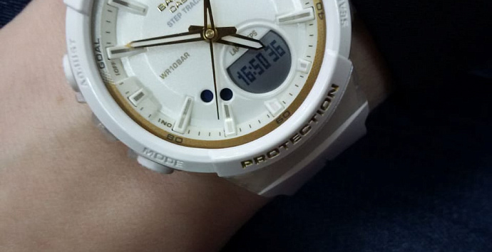 Здравствуйте! Я большая поклонница часов , считаю что это не просто нарядный аксессуар дополняющий мой образ но и полезный прибор времени . У меня много разных часов , но мне нужны были водонепроницаемые , ударостойкие для занятий спортом , поэтому я заказала BABYG. В функционале —два режима времени, таймер , секундомер , будильник , но самая важная функция ( почему именно эта модель) это шагомер с записной книжкой шагомера,оповещением о достижении поставленной цели и предупреждением об отсутствии активности . Просто супер... Эти часы оправдали все мои ожидания , а еще они очень стильные ...Белоснежный корпус и ремешок , золотые стрелки и риски интересной формы гармонично смотрятся с надписями , думала будет маленький циферблат , как видите в самый раз ...Я рада что сделала себе такой подарок , классные ,стильные ,почти ко всему подходят, ношу с удовольствием почти не снимая… Спасибо вам !!!