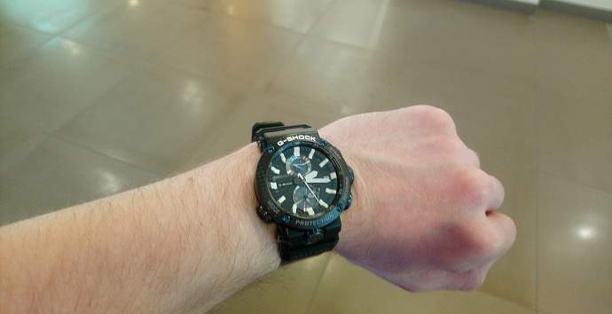 Часы оснащены новой структурой Carbon Core Guard, карбоновый монокок выполнен из смолы, армированной углеродным волокном, в модели G-Shock отсутствует задняя крышка. Это приводит к высокой прочности, а также меньшему весу (около 72 грамм), чем у любой предыдущей модели Gravitymaster. Как и в современной авиации, в этой модели углепластик (он же карбон) является основным материалом, вытеснившим металлические сплавы. Как вы уже заметили, перед нами литой карбоновый безель с идеальной отделкой, состоящий из 52 углеродных слоев, благодаря чему, его текстура видна даже на боковых частях безеля, карбоновыми волокнами дополнительно усилен и ремешок модели.