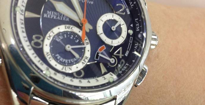 Формат времени 12/24 Время может отображаться как в 12-часовом, так и в 24-часовом формате.Питание от солнечной энергии. Аккумулируя световую энергию, солнечная панель обеспечивает питание для работы часов.Кольцевая батарея Eco-Drive. Солнечная батарея выполнена в виде цилиндра по краю циферблатаВечный календарь Календарь на широкий диапазон лет, предназначенный для определения дня неделиОтображение текущей даты и дня недели в аналоговых часах. Мульти-сигнал, ежечасный сигнал Существует 4 типа сигнала: 1 - ежедневный; 2 - ежемесячный; 3 - сигнал в определенное время каждый день определенного месяца; 4 - сигнал в определенное время, в определенный день (на дату). Цифра указывает количество возможных установок сигнала.Неоновая подсветка. Подсветка в часах эмитирует ультрафиолетовый свет. Дисплей и стрелки имеют флюорисцентное напыление. В результате этого создается специальный световой эффект, выделяющий каждую из цифр на дисплее.Хронограф Часы с двумя незвисимыми системами измерения. Одна измеряет короткие промежутки времени, в то время как другая показывает текущее время.Индикатор низкого заряда батареи. Сигнал низкого заряда батареиПитание от солнечной энергии, запас энергии на 270 дней Застежка с тройным сгибом, расстегиваемая одним касанием.