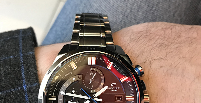 Компания Casio выпустила новую модель аналоговых часов EDIFICE EQS-600 на ремешке из натуральной кожи и на стальном ремешке. Крупные функциональные часы со спортивным дизайном водонепроницаемы до 100 Бар, имеют секундомер, солнечный аккумулятор и отображают дату.